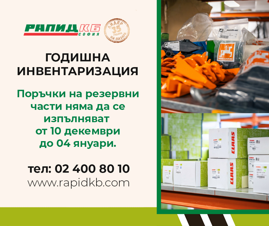 В периода от 10 декември 2025 г. до 4 януари 2026 г. РАПИД КБ ще извърши планирана годишна инвентаризация, както и актуализация на вътрешните системи във връзка с преминаването към евро.
