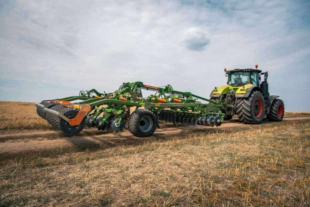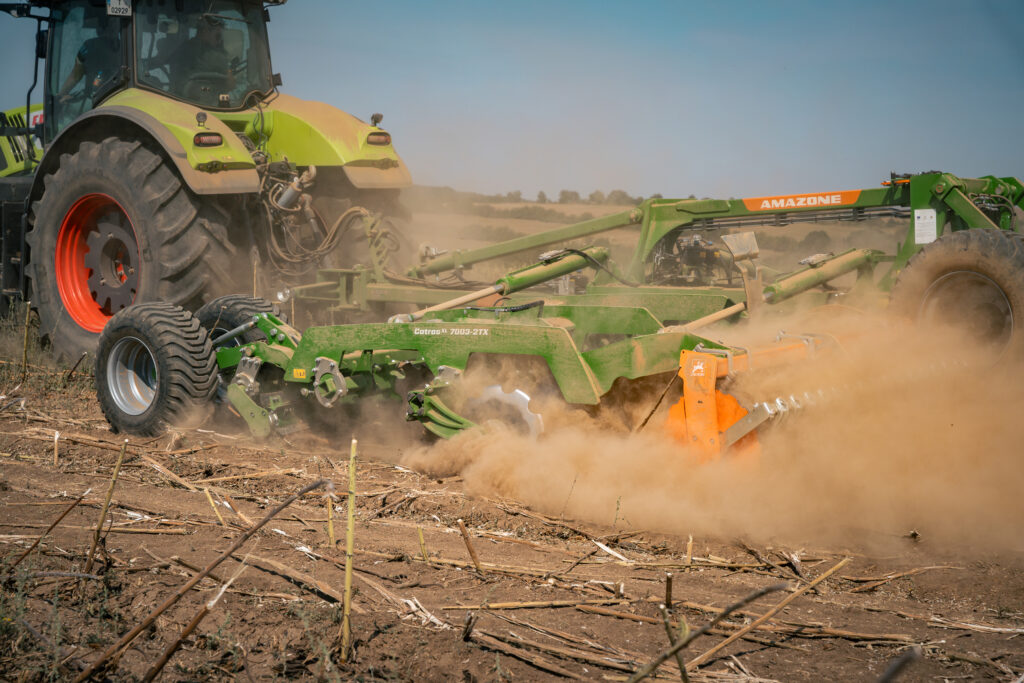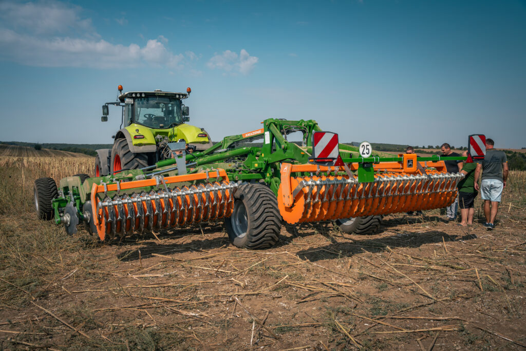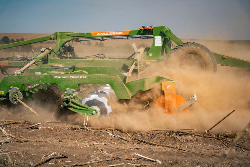 В землището на село Водица екипът вече работи с AMAZONE CATROS XL 7003-2TX – комбиниран инвентар със сечка и дискова брана и работен захват от 7 метра.