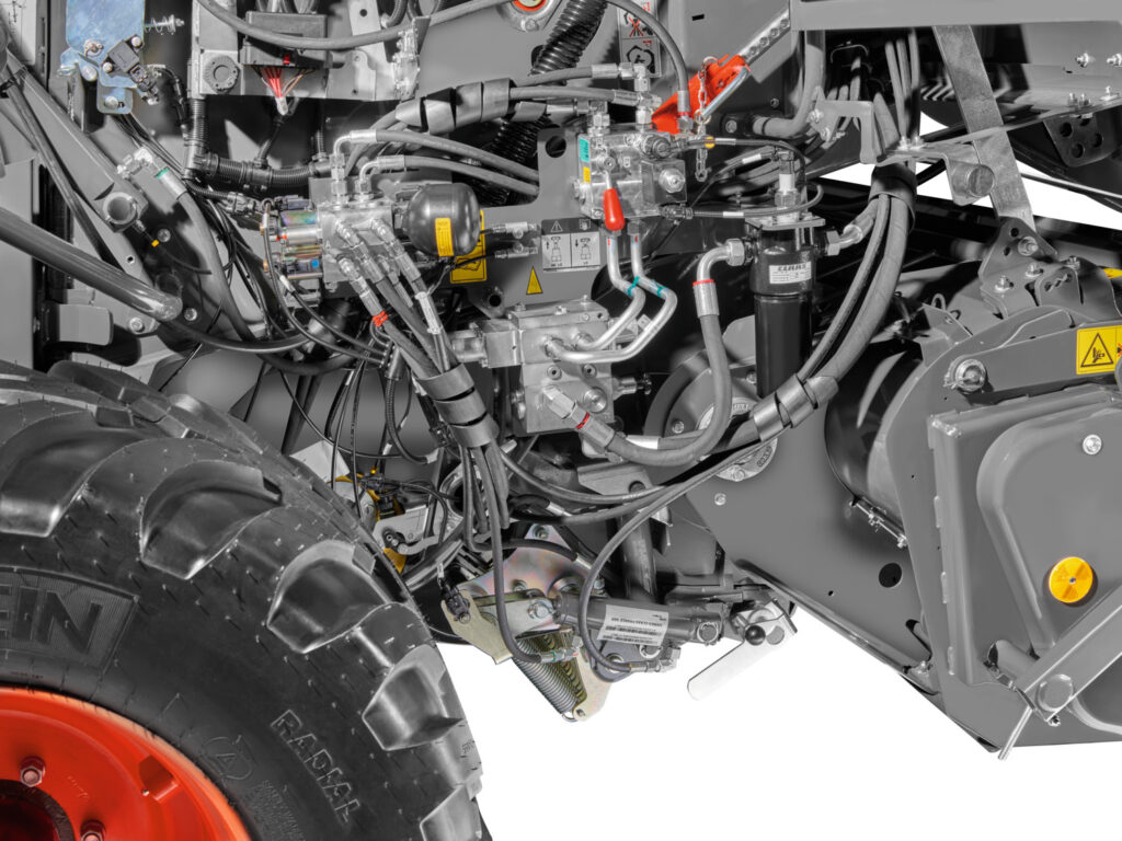 Новата централна система за смазване също е проектирана за най-взискателните и променливи условия на прибиране на реколтата. За да се направи шасито по-стабилно при екстремни условия на прибиране на реколтата, в участъците, подложени на най-големи натоварвания, се използват доказани елементи от балопресите QUADRANT. Стоманените профили, могат надеждно и трайно да издържат дори на най-големите натоварвания, например при много влажни култури със съответно високо тегло на балите. Удълженият с 15 см. теглич улеснява захващането и хоризонталното подравняване на балопресата и подобрява маневреността, особено при трактори с големи задни гуми.